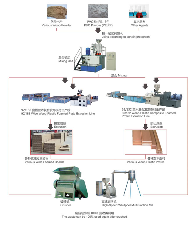 Processing flow chart of new type wood-plastic composite plate and profile