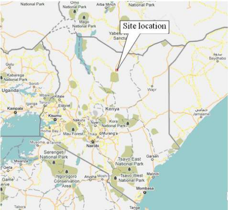 The Bubisa Wind Power Project (hereinafter referred to as the “Project”) lies in Marsabit District, a semi-desert area in north Kenya. The site is seated at an altitude of 540 to 620m and occupies an area of 75km2. The proposed installed capacity of the Project is 200MW. The site is about 42km away from Marsabit town and 470km away from Nairobi, capital of Kenya.