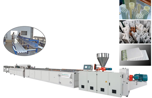 PVC frofile&foamed extrusion line is designed for extrusion of PVC plastic door's and window's profile and cross-section cable pipe,aluminum-plastic composite profiles etc.PVC profiles are widely used in the building industry,home and office decoration.