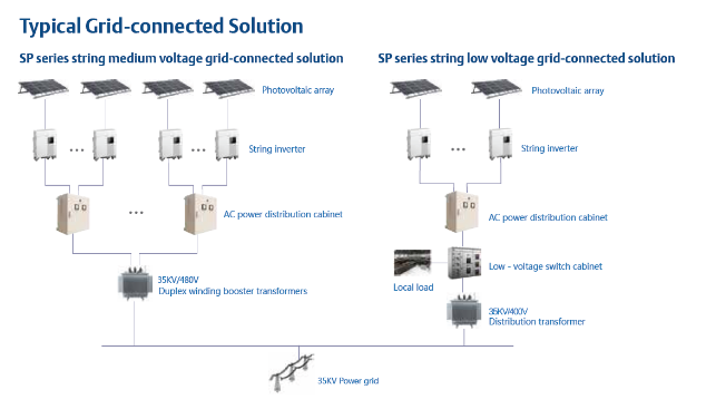SP is a string PV inverter of high efficiency which integrates leading design concept of muilt-level, soft switch, multi-way MPPT,and natural cooling method. SP can access distribution network or power supply system (including low voltage and middle voltage access), and can be applied to commercial roofs, industrial parks, agricultural greenhouses and other distributed PV grid-connected power generation sites.
