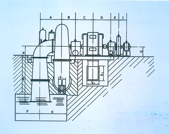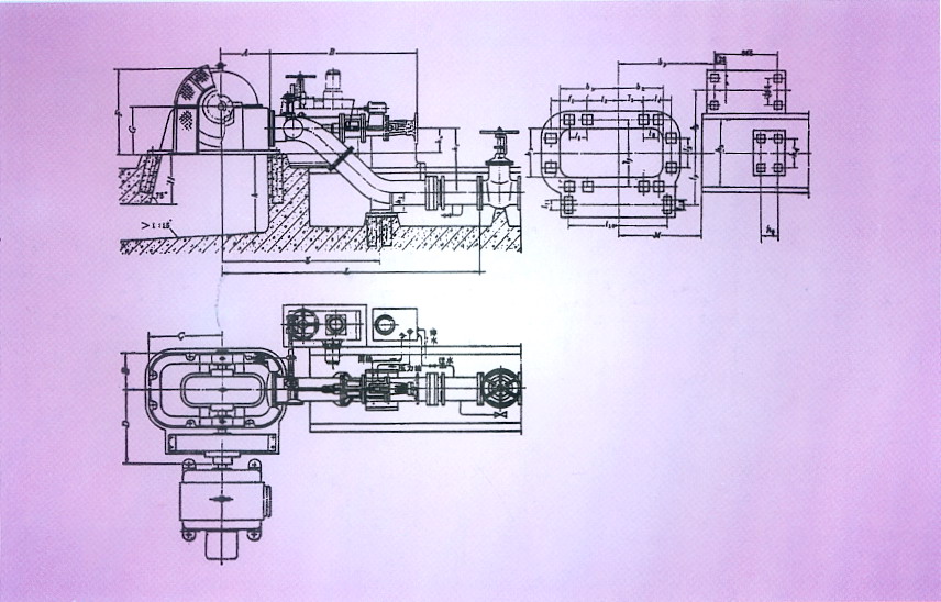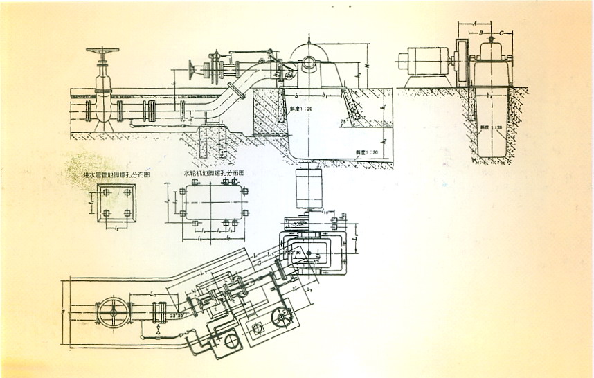 Inclined Jet type water turbine-generator unit install drawing