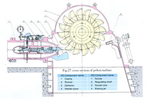 ![]() Single nozzle pelton unit | ![]() Structure of Single nozzle pleton unit |
